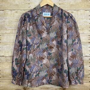 Vintage Surrey Blouse Fabric Covered Buttons All Over Print Womens Large