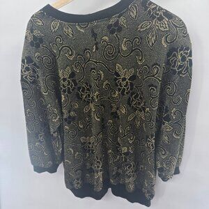 Vintage Susan Anthony Black Gold Floral Jacquard Swirl Sweater 1x
