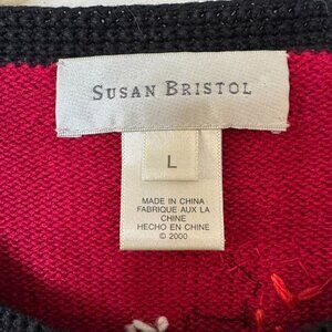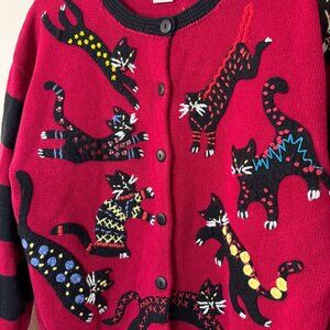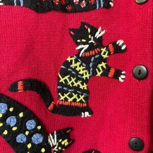 Vintage Susan Bristol Cats Knit Sweater Cardigan Red Black Grannycore Large
