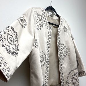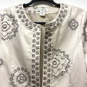 Vintage Susan Bristol | Embroidered Blazer 3/4 Sleeves Floral Cream/Black M