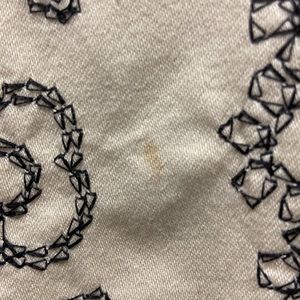 •Stitching trims the front, around neckline, cuffs and sporadic throughout body in circular and floral bursts