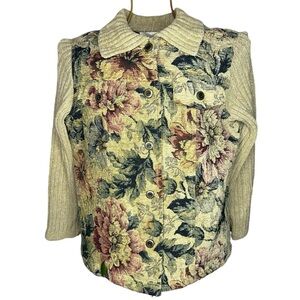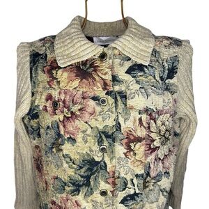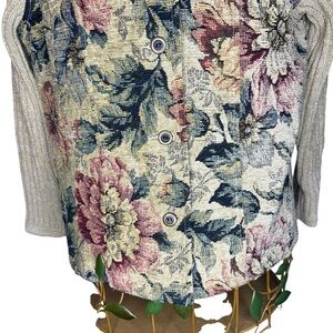 Vintage Susan Bristol Embroidered Tapestry Floral Button Up Sweater Jacket - PM