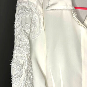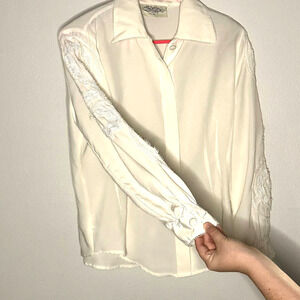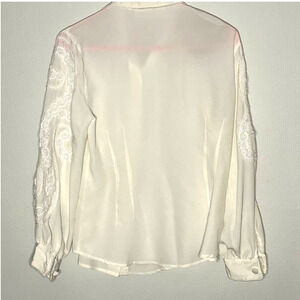 Vintage Susan Bristol Top Ivory Button Front Lace Embroidered Sleeves Sheer P8