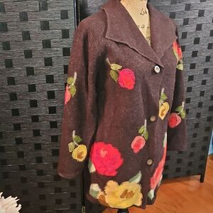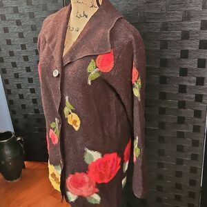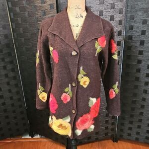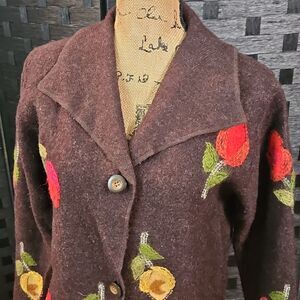 Vintage Susan Bristol 100% wool Brown hand embroidered floral motif, full front button closure cardigan jacket, size Small. Excellent pre loved condition, measurements in pics, smoke free home, ships next day. Over 2,500 Poshmark Sales. Bundle and Save!