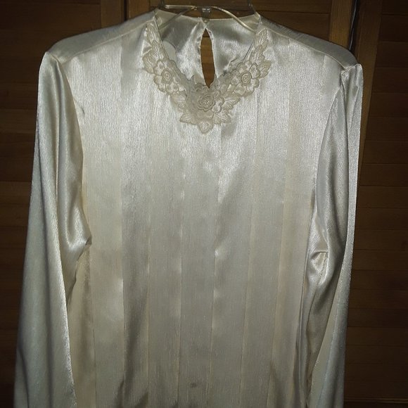 Vintage Susan Hutton SZ 12 Ivory Shimmer Embroidery Pleats Blouse Top Career