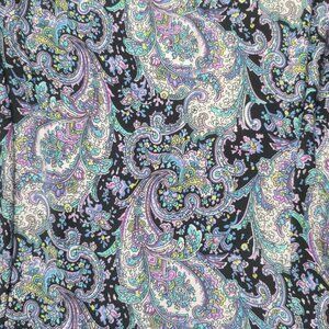 This vintage Susan Lawrence skirt boasts a vibrant paisley print, offering a stylish and comfortable fit. Made from quality materials, it drapes elegantly.