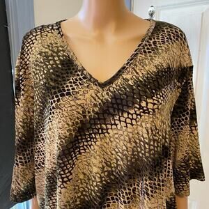Vintage Susan Lawrence USA Made Jersey Knit Top T Shirt Women Sz 3X Animal Print