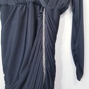 Vintage Susan Roselli for Vijack Black Satin Rhinestones Party Cocktail Dress