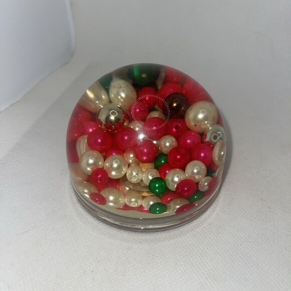 Vintage Suspended Beads Paperweight Lucite Acrylic Domed Souvenir