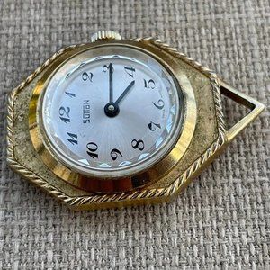 Vintage Sutton Watch Necklace Swiss Made Gold Tone Hand Winding Pocket Watch