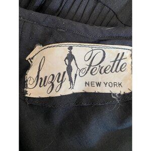Vintage Suzy Perette 1960's Capped Sleeved Black Pin Tucked Bodice Union Made Dr