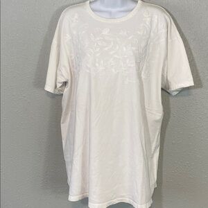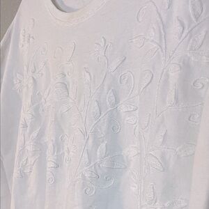 Vintage Swan Magic White Embroidered T-Shirt – Floral Raised Design Size L
