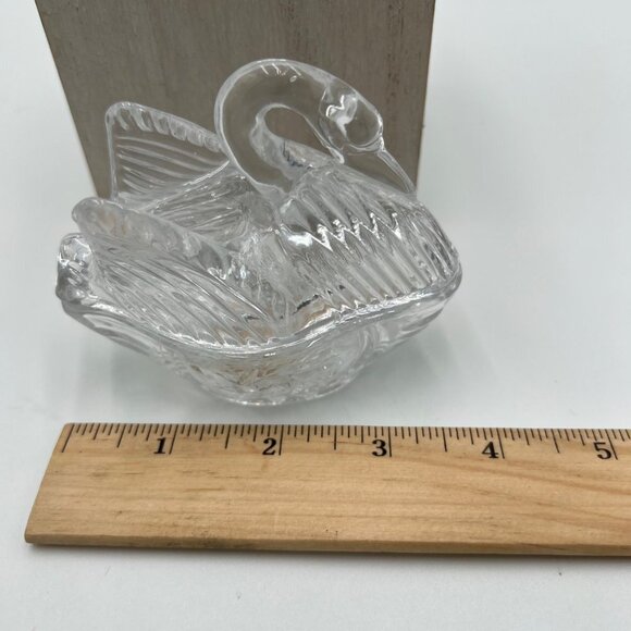 Vintage clear pressed glass trinket dish, created in the form of a swan on nest. This crystal piece, made in Taiwan, is perfect for adding a touch of elegance to any room.