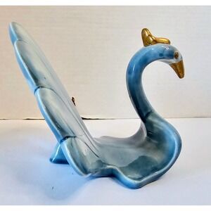 Vintage Swan Towel Holder Blue Ceramic Gold Accent 80s Decor