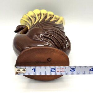 Beautiful Unique and Rare Vintage vase and/or planter is from Japan. Made of ceramic with a brown and yellow drip pattern and a glossy finish. The vase and/or planter is shaped like a swan and has an Art Deco style. It measures 6 inches in height, 4 1/2 inches in length, and 2 3/4 inches in width. The vase is a mid century Modern original production, from the 1950s. It is a decorative item with a water fowl theme and can be a great addition to any pottery and glassware collection.