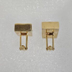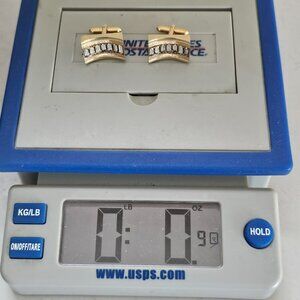 These Vintage Swank Cufflinks feature a classic gold tone textured & smooth design with clear rhinestone baguette accents in a rectangle shape. The cufflinks are signed by Swank and are perfect for special occasions such as weddings, anniversaries, and more. Made in the United States, these cufflinks exude a retro and art-themed style, adding a touch of sophistication to any outfit. With a bullet back closure, these cufflinks are a stylish and timeless accessory for men. Measure 7//8" long x 9/16" wide. In good pre-owned condition with minimal age related wear (see photos & video for condition)