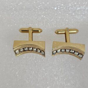 Vintage Swank Cufflinks Baguette Clear Rhinestone Gold Tone Rectangle Curved MCM
