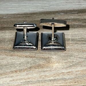 Vintage Swank Cufflinks with Black Onyx Style Inlay Men’s Silver Tone Classic
