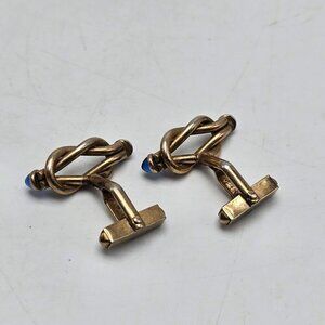 Vintage Swank Gold Tone Cufflinks With Blue Glass Cabochons