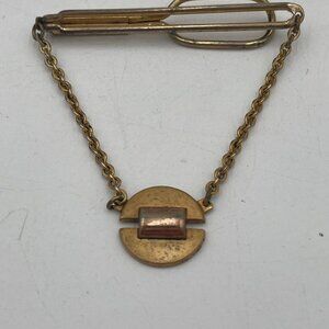 Vintage Swank Gold-Tone Tie Bar With Chain & Geometric Pendant