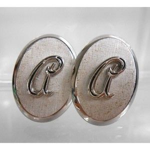 Vintage Swank Initial Monogram Cursive Letter A Oval Cuff Links Silvertone