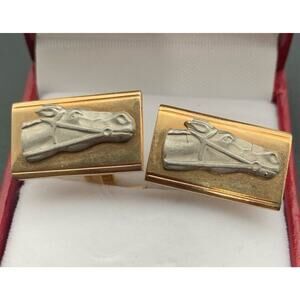 Vintage Swank Racing Horse Head CuffLinks Gold-tone Silver-tone Cuff Links