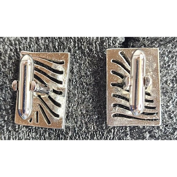 Vintage Swank Silver Tone Cufflinks & Tie Tack / Clip Set – Sunray & Angel Wing Design