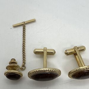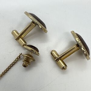 Vintage Swank Tigers Eye Cufflinks Tie Pin SET Oval Gold Tone