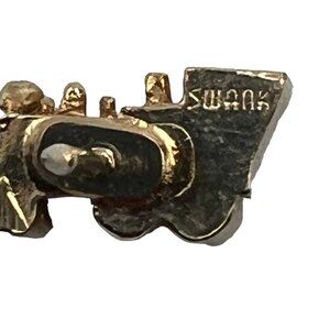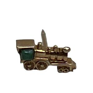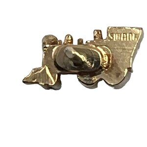 Vintage Swank Train Engine Tie Tack Pin Gold Tone Green Accent Railroad Pin