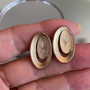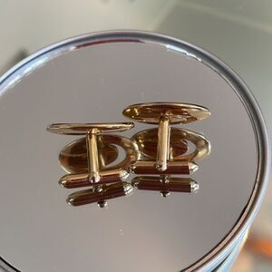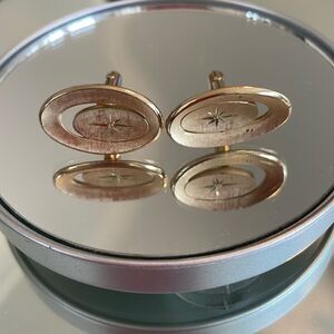 Vintage Swank gold tone oval cuff link s with etched starburst