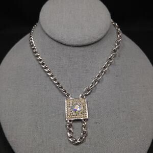 Vintage Swarovski AB Square Pendant Necklace Swan Logo Rhodium