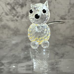 Vintage Swarovski Austrian Lead Crystal Faceted Cat With Posable Metal Tail