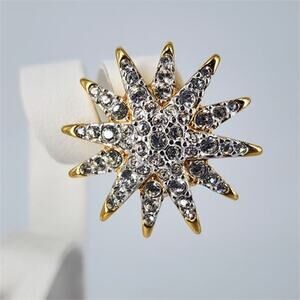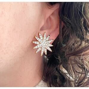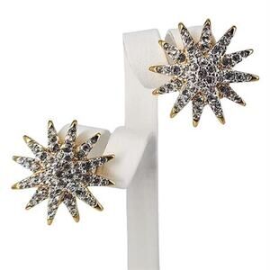Vintage Signed Swarovski Jeweler's Collection Crystal Pave Starburst Clip Earrings