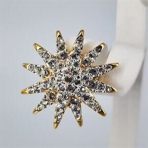 Vintage Swarovski Crystal Starburst Earrings Pave Clip On Statement Signed Party