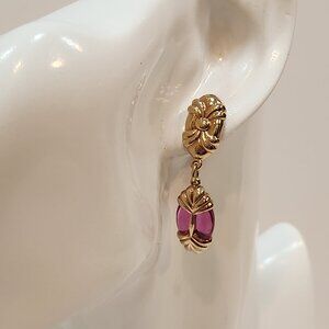 Vintage Swarovski Goldtone Purple Crystal Drop Pierced Earrings