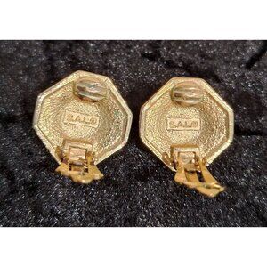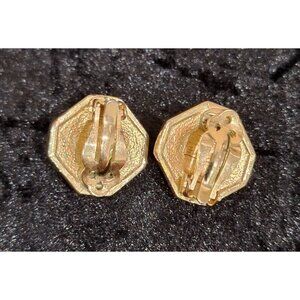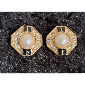 Vintage Swarovski SALO Gold Tone Faux Pearl & Crystal Octagonal Clip-On Earrings