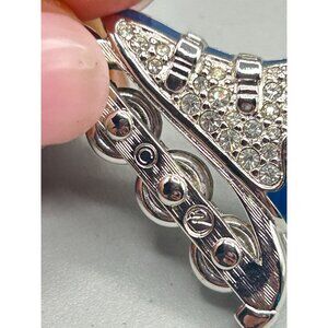 Vintage Swarovski Swan Rollerblade Skate Pendant Necklace Spinning Wheels
