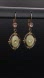 Clear Swarovski stones set in green enamel and antiqued bronze settings with wire lever back drop earrings.