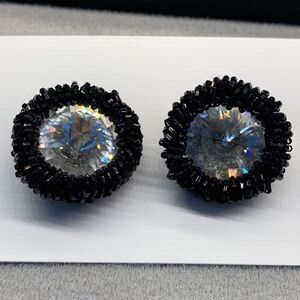 Vintage Swarovski Crystal Rivoli with black glass beaded earrings pierced art…