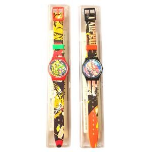 This set usually comes shrink-wrapped and sealed. I have a few of these, so I decided to open this set and test the watches, and I decided to put them in the vintage Swatch plastic cases to better preserve them. The set will be shipped exactly as shown in the pics. No additional artwork or paperwork is included.