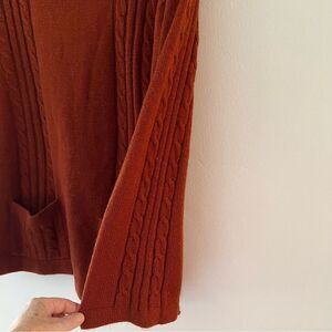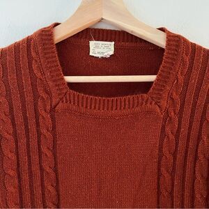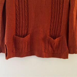 Vintage Sweater 70s Square Neckline Cable Knit Pockets Rust Small