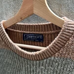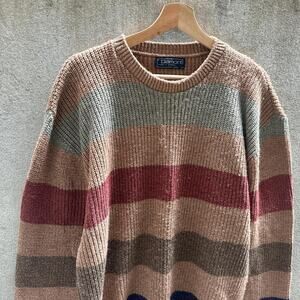 Vintage Sweater 90s Striped Crewneck Pullover Long Sleeve Tan Brown Size 1X
