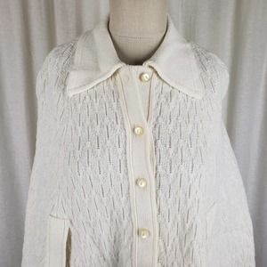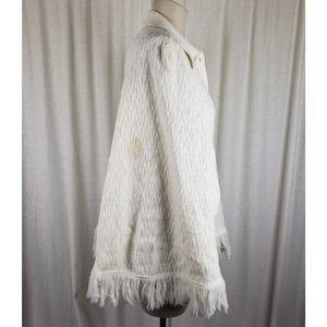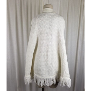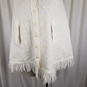 Vintage Sweater Bee by Baff Collared Button Up Cardigan Sweater Cape / Poncho with Fringe.