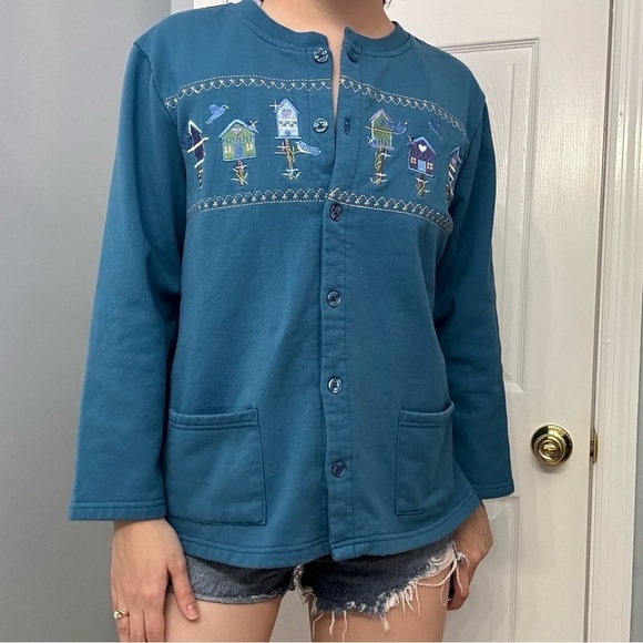 Vintage Sweater Cardigan Grandma Embroidered Bird Animal Kawaii Medium Petite