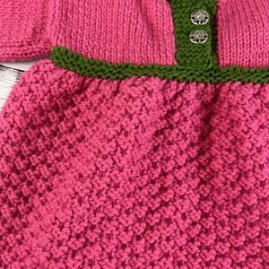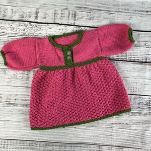 Vintage Sweater Crochet Little Girls Dress size 2-3 years Pink Green