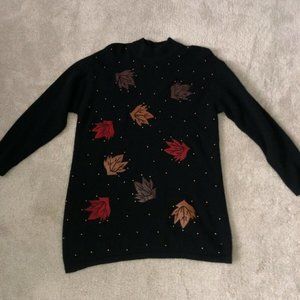 Vintage Sweater Evan Davies Lambs Wool Angora Rabbit Hair Leaves Granny Core