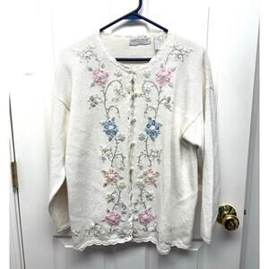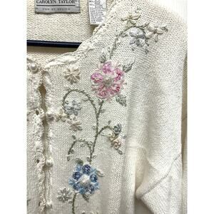 Vintage Sweater Floral Embroidered Beaded Sequin Cardigan Carolyn Taylor Size L