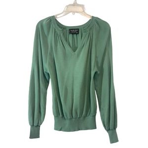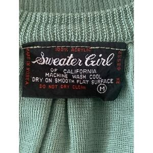 Vintage Sweater Girl Of California Green Key Hole Button Front Pleated Medium