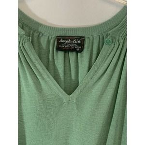 Vintage Sweater Girl Of California Green Key Hole Button Front Pleated Size M. Pre owned good condition. Approximate measurements:
