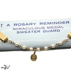 Vintage Sweater Guard Clip Rosary Reminder Miraculous Medal